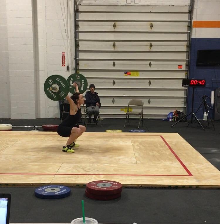 Huge congratulations go out to Bry for putting all her hard work to use at the Atlantic States Open this weekend where she not only hit a new competition PR in her clean and jerk and matched her competition PR in the snatch but she did so after dropping two weight classes since her last competition. She worked really hard over the last couple of months to reach this goal and walked away with some awesome results. When she first asked me back in December about which weight class she should enter I’m pretty sure she thought I was crazy but she took the risk anyway, set a goal and accepted the challenge. This meant huge sacrifices in her diet, spare time and sometimes her confidence level but she overcame all of that and it paid off. She took these last couple of months to really dial in her diet, showed up to every open gym session to work on technique and went through some pretty awful workouts by herself to make sure to hit that weight loss goal. AND, just because I know she would never brag about her numbers I’ll do a little of that for her, at this same meet last February she competed in the 75KG Weight Class and finished with an 88KG Total. This year she dropped two weight classes (17Lbs) to the 63KG Class and finished with a 96KG total, if that’s not something to be happy and proud of, I don’t know what is. So now that we're finishing week 2 of the weight loss challenge and you might be losing some motivation, take a lesson from Bry and set a goal for yourself that puts you out of your comfort zone, she could’ve easily competed in the same weight class as last time and attempted lifts she knew there was no risk in hitting but she did neither of those things. She set her goals high and put in the work to achieve them, walking away with way more than just some scores at a meet. Setting that one goal helped her achieve gains in strength, fitness, technique, body composition, mental toughness, confidence and health. When you see her, make sure to congratulate her on all of that and then set a goal of your own and see it through…